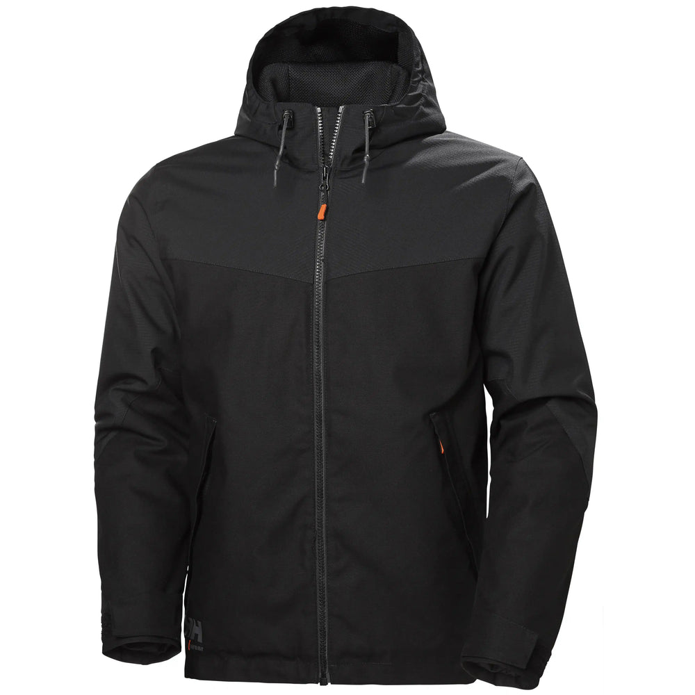 Die Winterjacke "OXFORD" von Helly Hansen ist ideal für kalte Tage bei Arbeit und Freizeit. Sie kombiniert strapazierfähiges Oxford-Mischgewebe mit schmutzabweisendem Polyester an Schultern, Kapuze und Ärmeln. Die PrimaLoft Black Eco-Isolierung aus recycelten Materialien bietet optimalen Kälteschutz. Die Jacke verfügt über einen durchgehenden YKK-Frontreißverschluss, verstellbare Ärmelbündchen und Saum, sowie eine abnehmbare Kapuze. Zwei seitliche Einschubtaschen und eine Innentasche bieten Stauraum. Das Design in gedecktem Schwarz ermöglicht individuelle Veredelungen. Ergonomisch geschnittene Ärmel und eine verlängerte Rückenpartie sorgen für Komfort und Schutz.